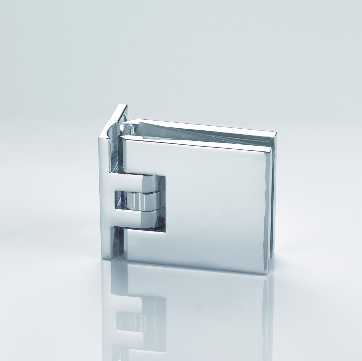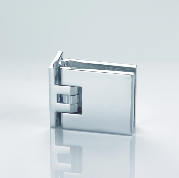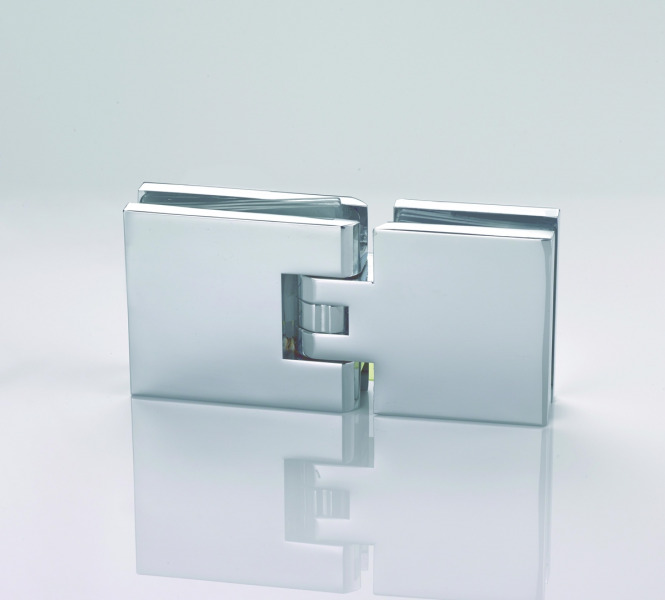 Adjustable double action clicking hinge with not visible screws. Material: Fixing plate brass. Hinge Zamak.