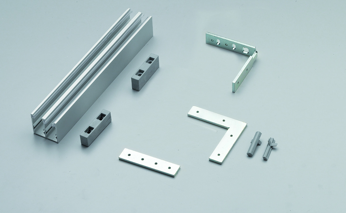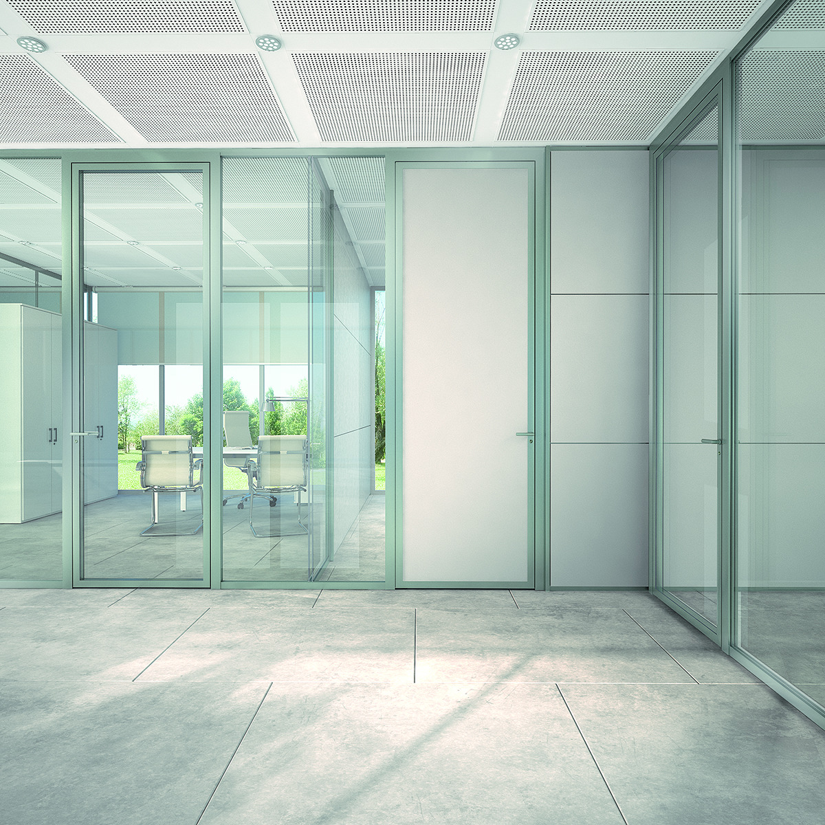 Partition wall accessories for double glass with coordinated frame.