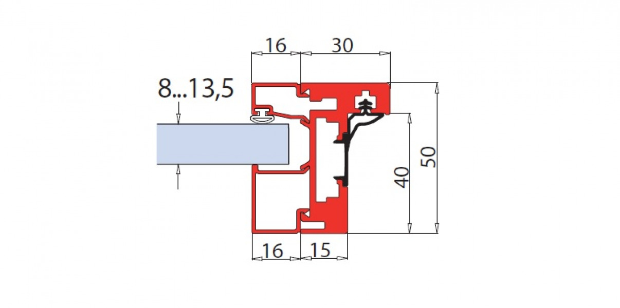 Aluminium frame for hinged door.