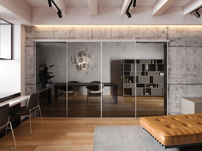FRAMED SLIDING DOORS WITH FIXED PANEL