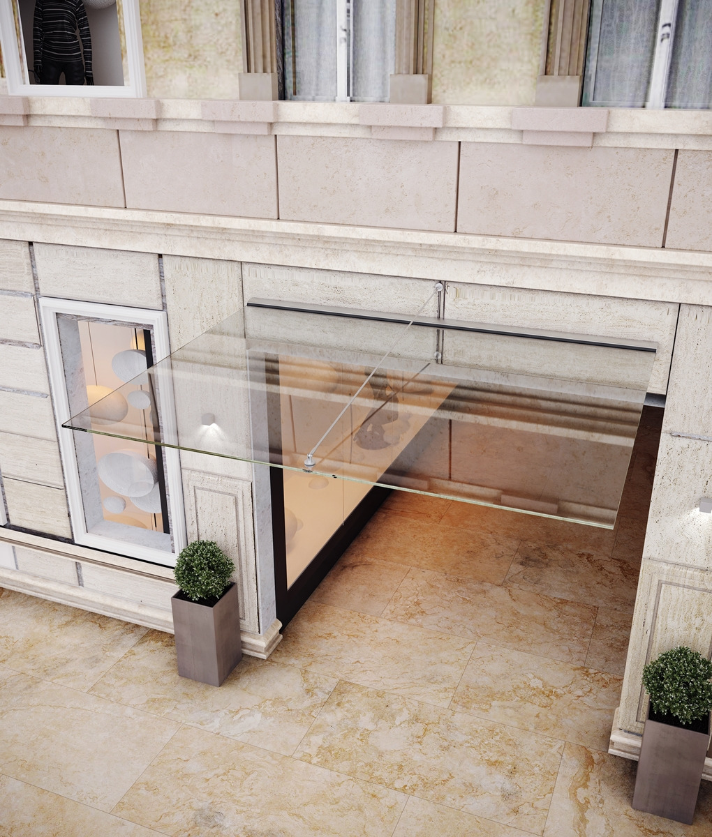 SOLUTION WITH TENSION ROD FOR EXTRA GLASS PROJECTION