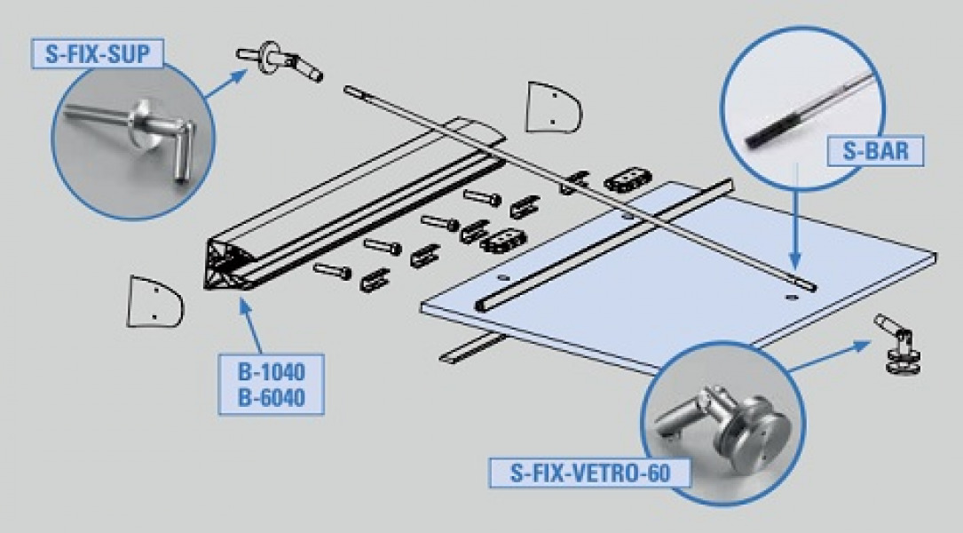 The two jewels with essential and minimal design, maximum load and greatest safety thanks to the patented fixing and glass anti-slip system.