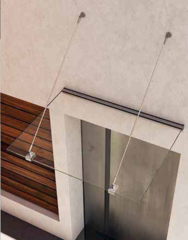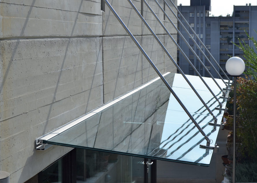 Canopy system without glass preparation, with rain gutter profile