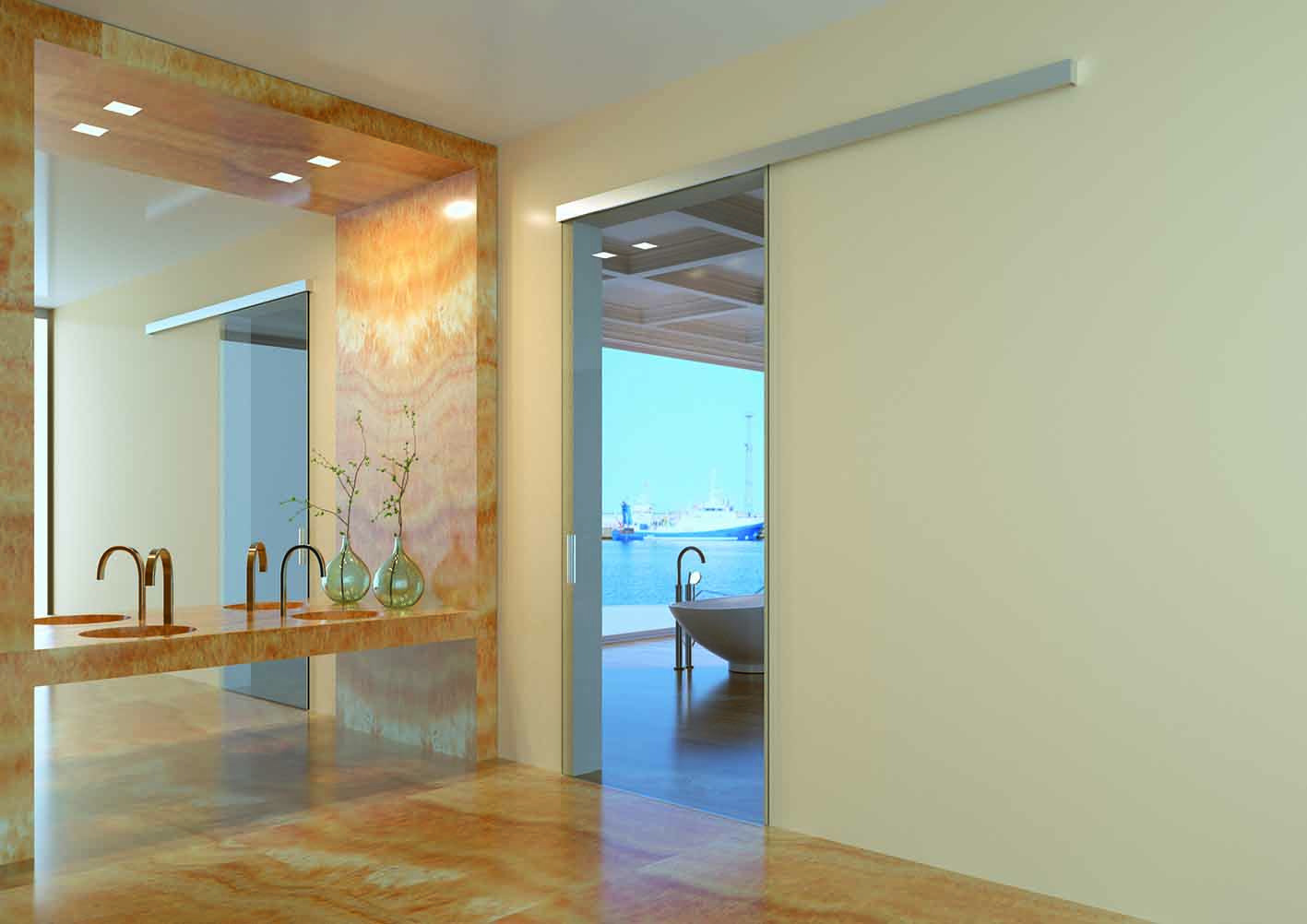 Sliding doors system, wall/ceiling installation (only 1 cover included)
