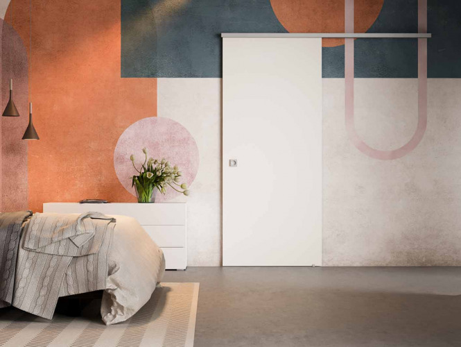 SLIDING DOOR SYSTEM WITH INVISIBLE TRACK PROFILE