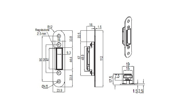 Magnetic strike plate adjustable through front screws for magnetic locks: MV-100/MV-200/MV-400/MV-720