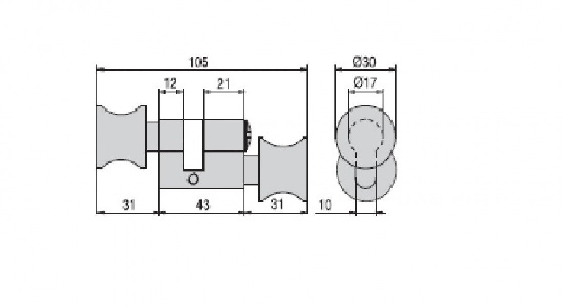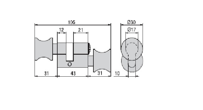 WC cylinder asymmetrical with double knob (1 with closing function, 1 fixed).