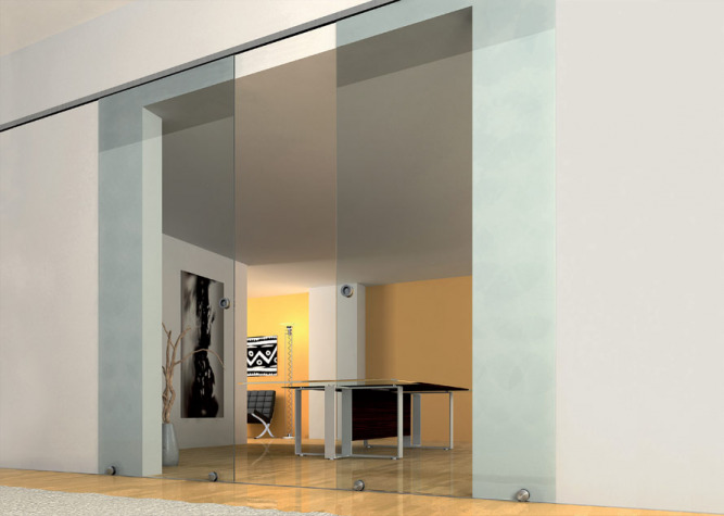 SLIDING DOOR SYSTEMS WITH VISIBLE MECHANISM ALONG THE WALL
