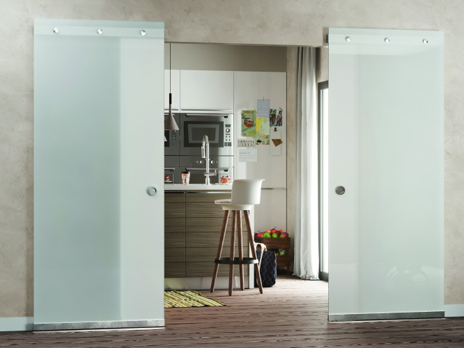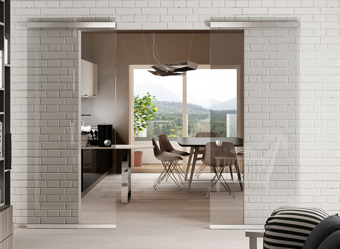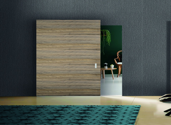 SLIDING DOOR SYSTEMS WITH VISIBLE MECHANISM ALONG THE WALL