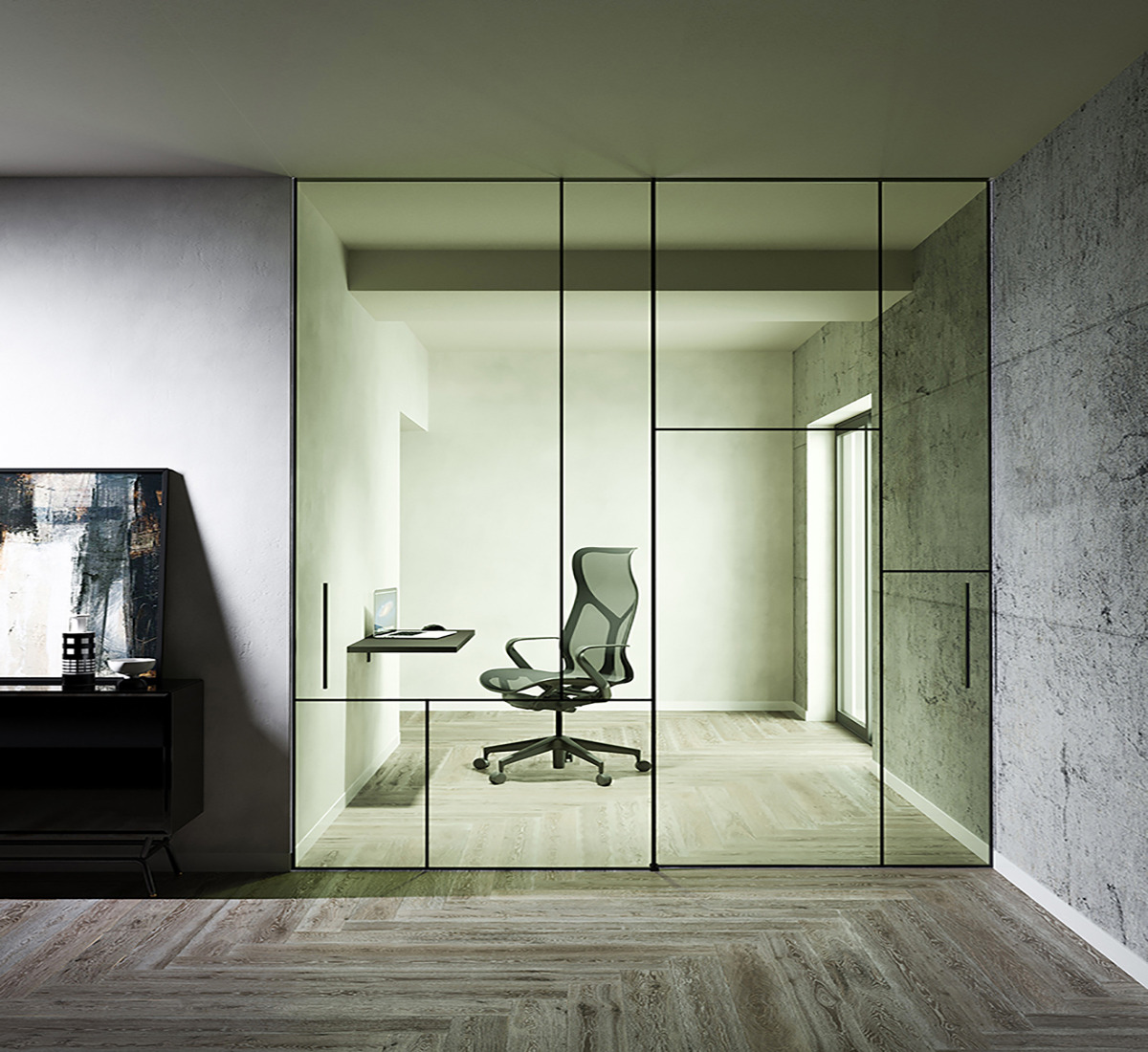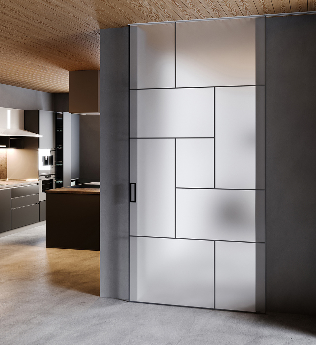 FRAMED DOOR WITH FIXED PANEL AND INVISIBLE PROFILE