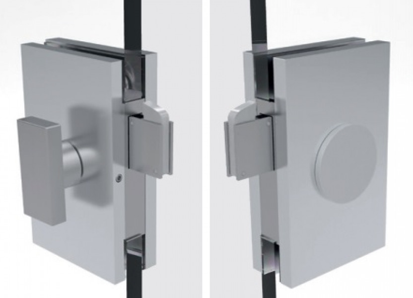 Lock with hook for sliding doors with visible screws. Strike plate not included