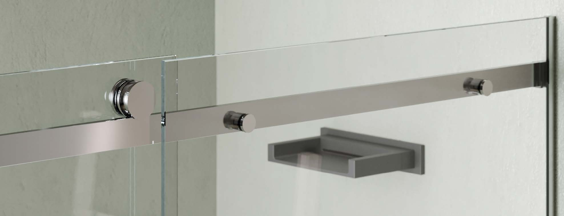 Sliding system for shower box.