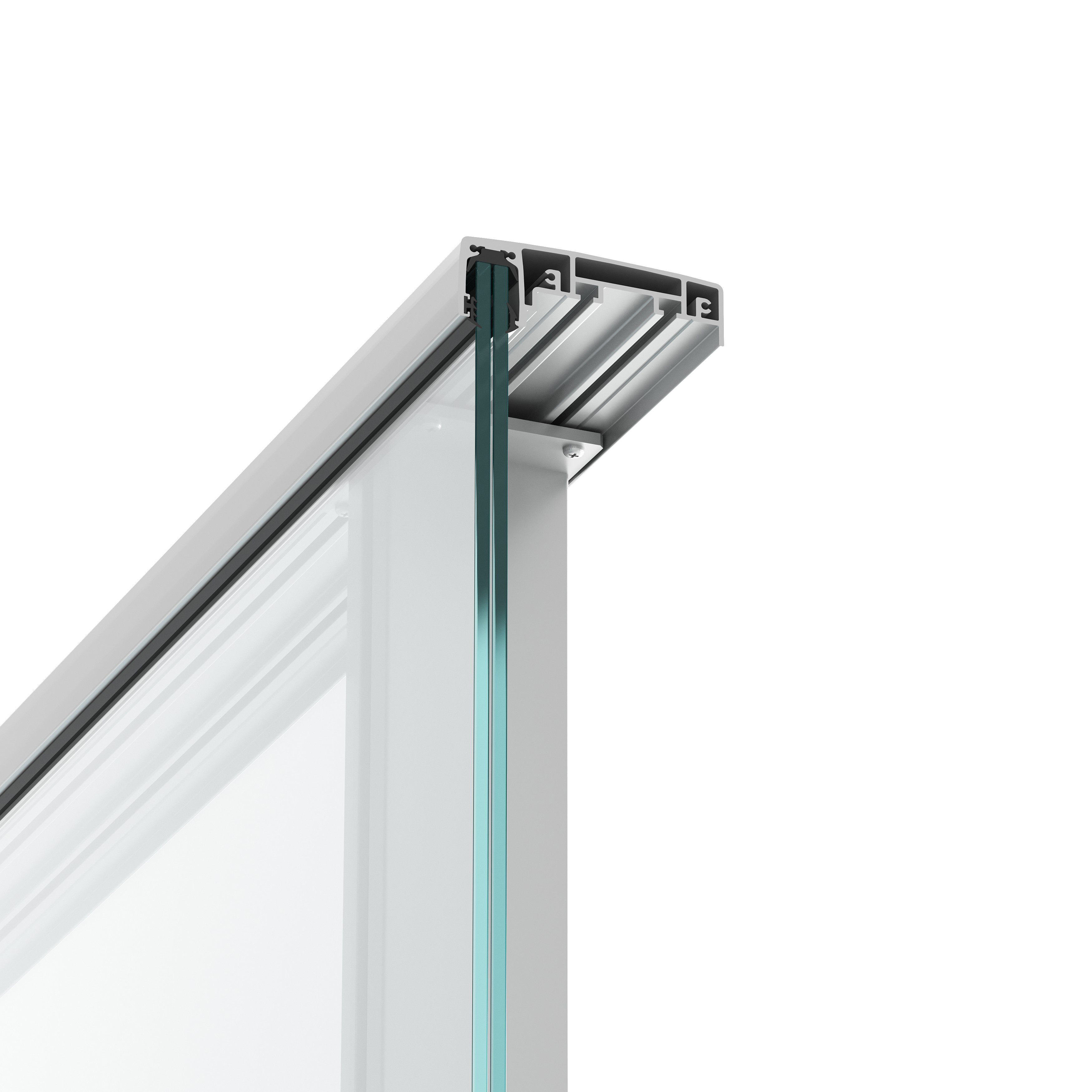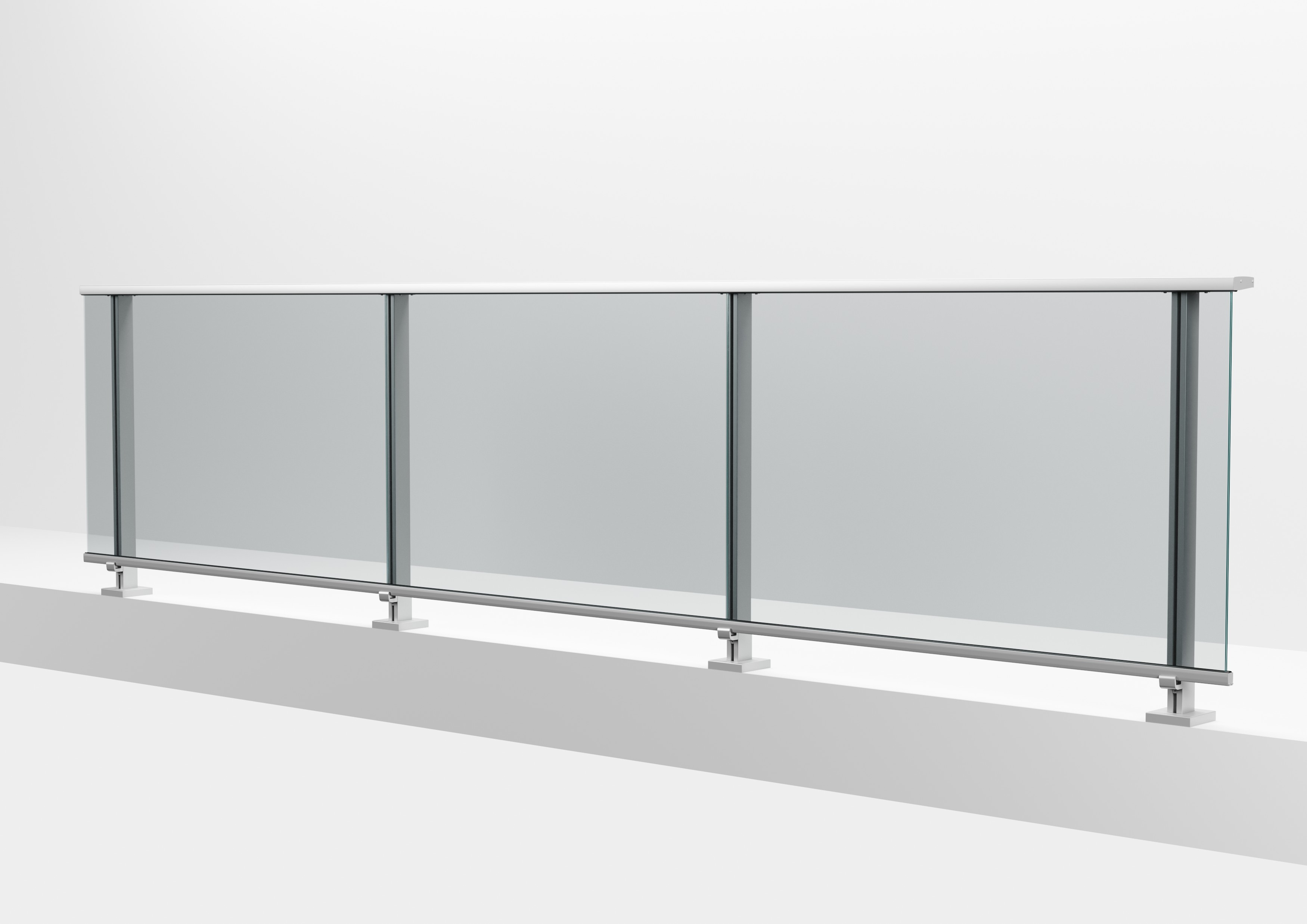 Version for glass integrated in the handrail, floor installation.