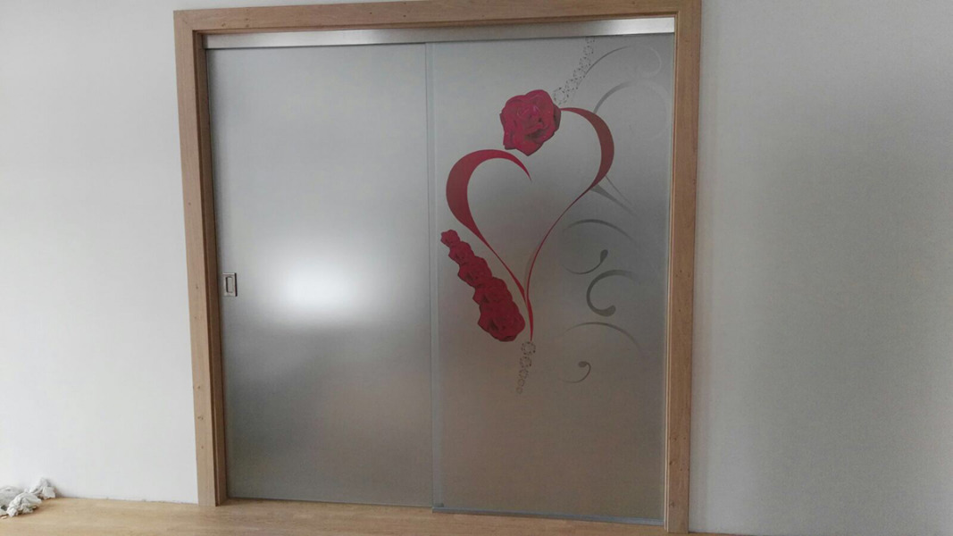 Sliding doors system with fixed panel, wall/ceiling installation