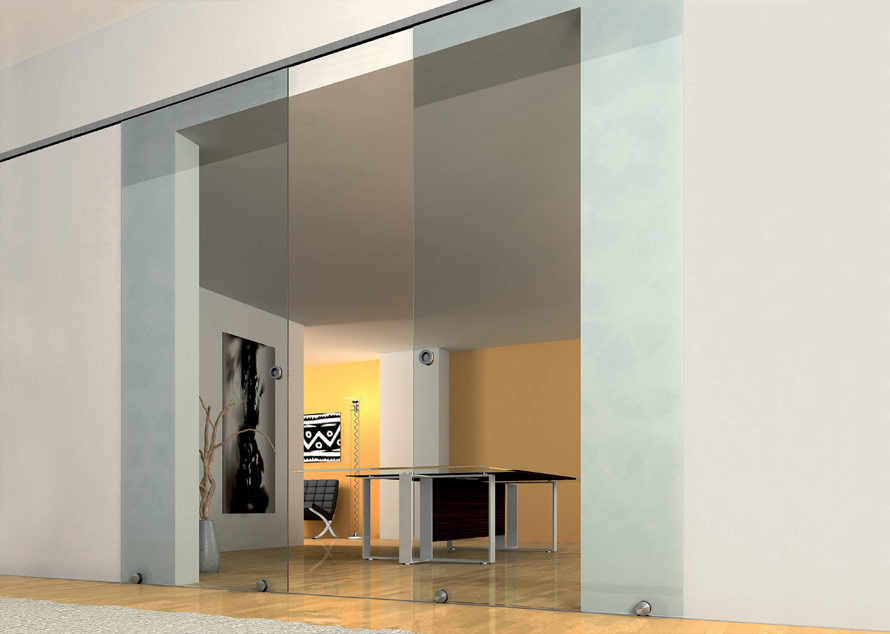 Sliding doors system, wall/ceiling installation