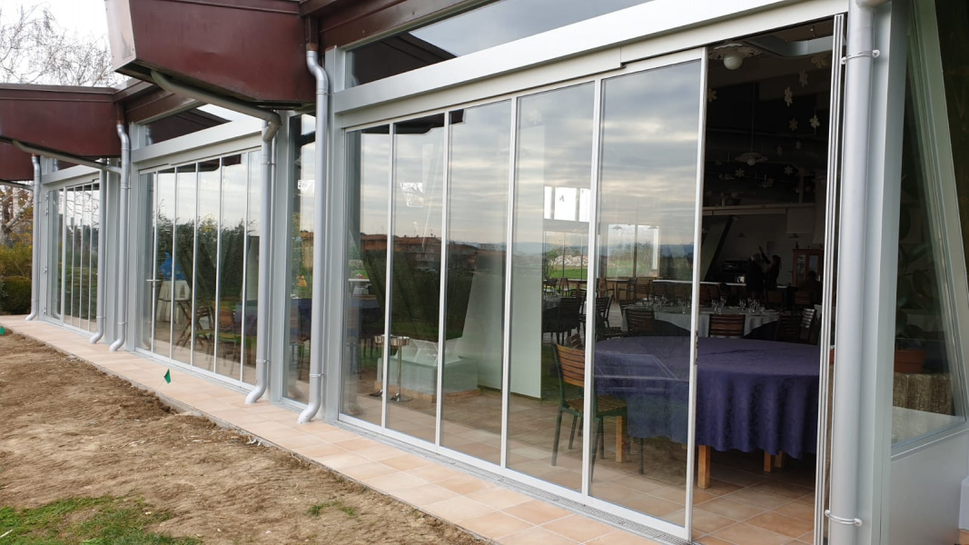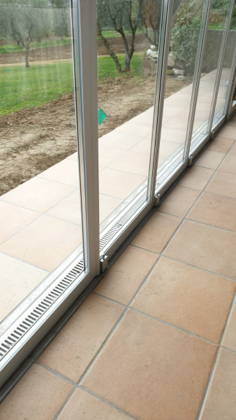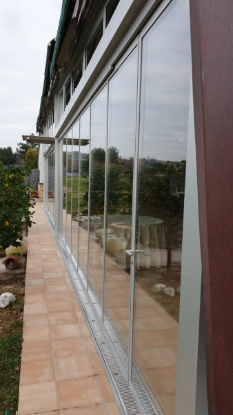 Sliding stacking system with profiles for framed glass door standard measures up to 1000 x 3000 mm cut by installer.