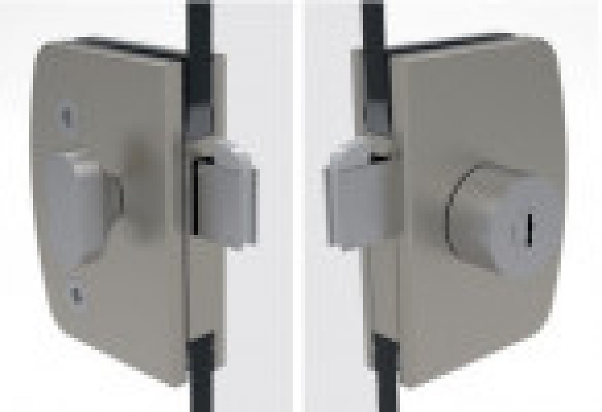 Lock with hook for sliding doors with visible screws. Strike plate not included