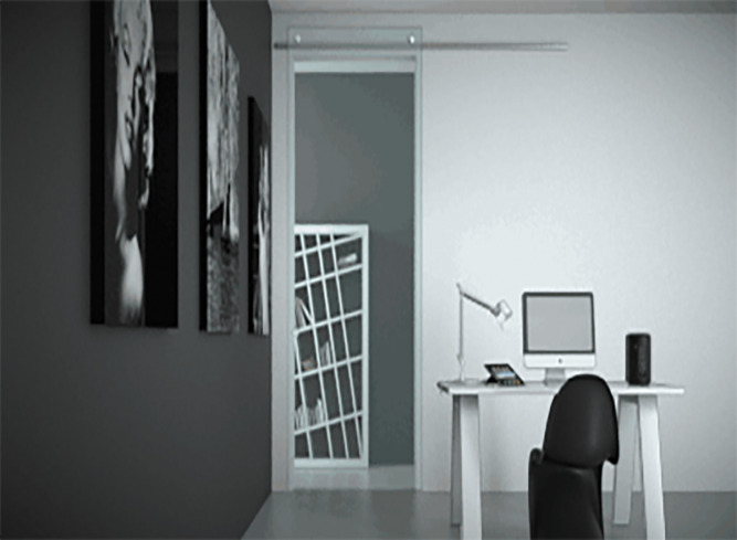 SLIDING DOOR SYSTEMS WITH VISIBLE MECHANISM ALONG THE WALL